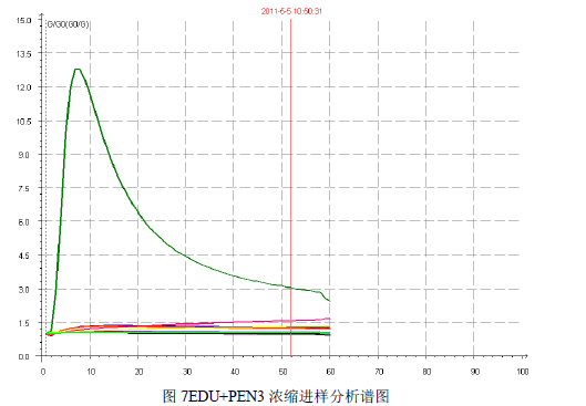实验结论:德国 AIRSENSE 公司的PEN3 型嗅辨仪在这次的环境恶臭气体的分析检测中,可以说达到了很好的试验效果。采用EDU 吸附浓缩热解析装置联用,效果也是极其明显。并且通过参照和建立国家标准相对应的模板文件,可对环境空气进行监测,能够直接测定出其恶臭强度OU 值。具体归纳如下: